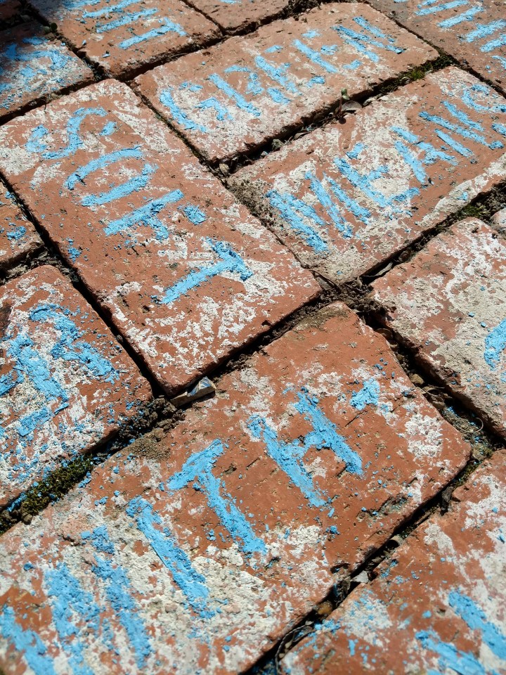 An ongoing project of mine has been playing with book forms to create poems (see the “studies for green room,” circa 2015, on my old blog), and my patio bricks have been calling to me for years.