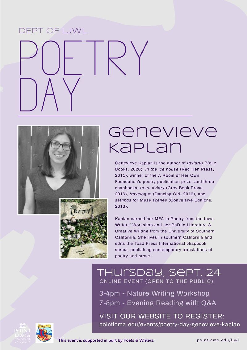 I get to spend some time (virtually) at Point Loma Nazarene University for Poetry Day on Thursday, September 24.