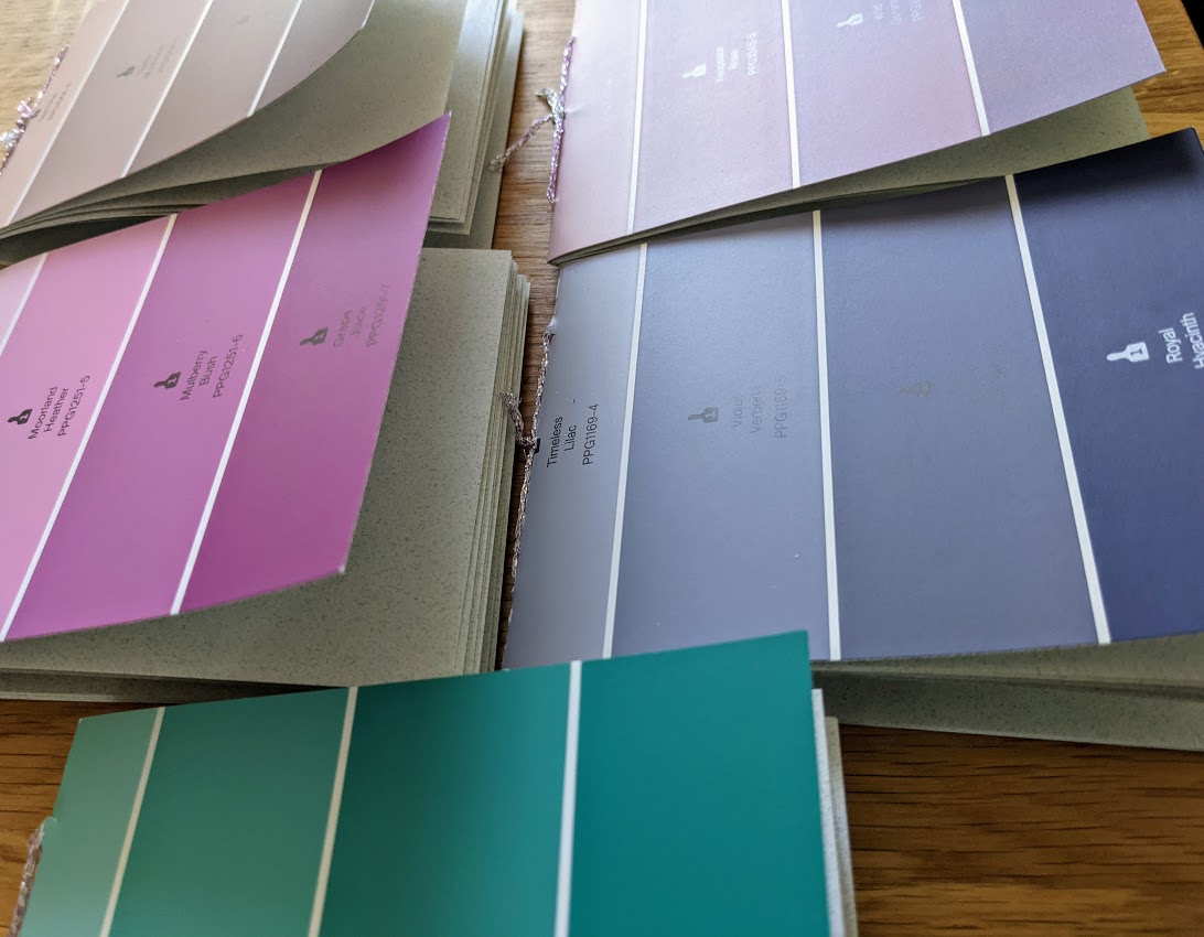 I love using found and recycled materials to create small blank notebooks! I always find paint chips inspiring, and during my last visit to the hardware store I picked up a few new colorful paintchips to try as notebook covers. I cut paper to size for the interior sheets, punched small holes in the spine with a needle, and sewed these cheery striped blank journals together with pink/silver glitter thread. These notebooks fit easily in your pocket or purse and open flat for easy writing.