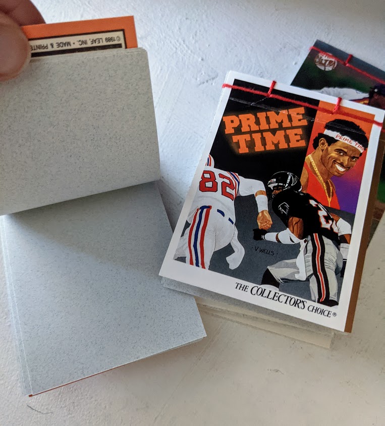 Read more about these simple notebooks (or purchase one — just $3.50 for the striped paintchip journal) at my Etsy shop. And, check out some of my other tiny/recycled notebooks (shown below: vintage washi paper journal, vintage sports pocket journal, pantone pocket notebook, striped paintchip journal) I’ve been making:
