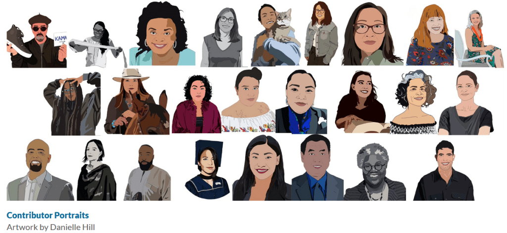 Et Al.: New Voices in Arts Management isn’t a book that’s just for arts managers or scholars–the essays and ideas here are so worth exploring, whether you are an artist, arts supporter, arts manager, or just a human living in the world. Please join me in celebrating the powerful and thoughtful work of our contributors (pictured below, rendered in portrait form by Et Al. contributor and artist Danielle Hill) by spending some time with this vibrant and important publication.