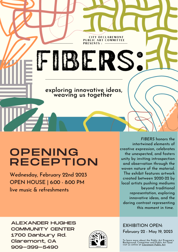 I’m excited to invite you to the Alexander Hughes Community Center in Claremont for the in-person opening of the FIBERS public art exhibit on Wednesday, February 22 from 6:00-8:00pm. My “soft book” is included in the show, which runs through May 19. It’d be great to see you at the opening, and I hope you can make it to the exhibition, which “features the work of artists using textiles such as fabric, yarn and natural and synthetic fibers to convey an aesthetic value over utility.” Neat!